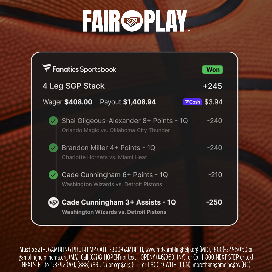 On Tuesday night, Fanatics Fair Play benefited bettors to the tune of: