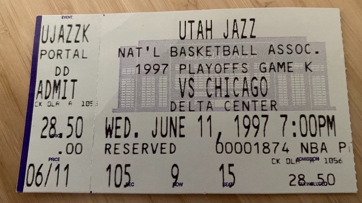He kept the stub while the majority of the Utah Jazz crowd left it on the Delta Center floor that night after a sick Michael Jordan rallied from whatever he had to beat them again.