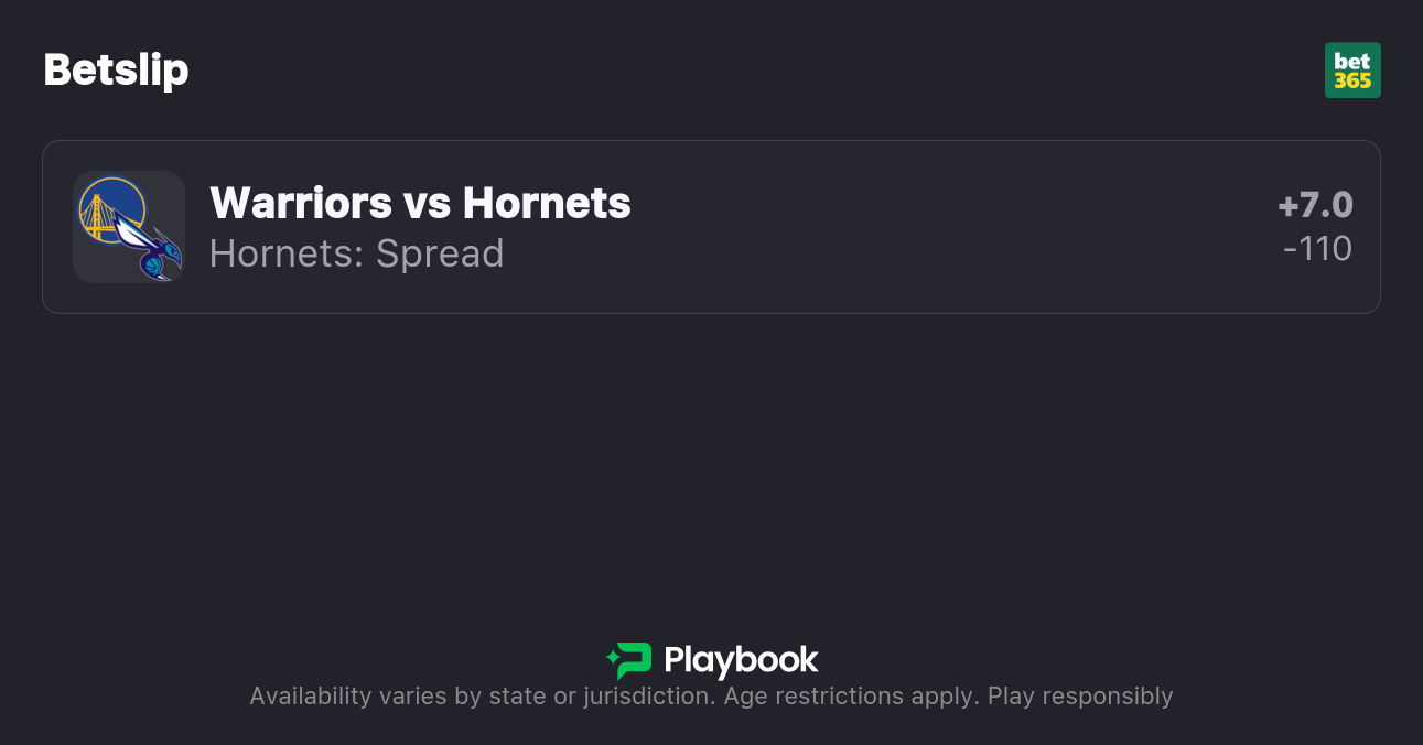 - Warriors vs Hornets pick: Hornets +7 (-110)