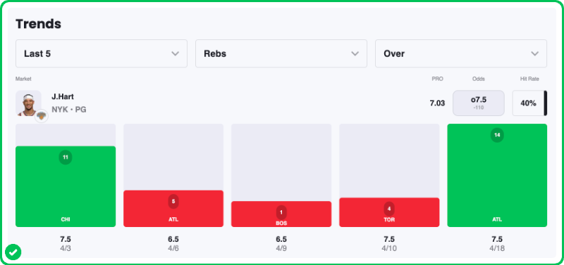 I know the regular-season data might give some bettors pause. Hart "only" had 18 double-digit rebounding games this season, which was a significant drop from the 39 he put up last year.