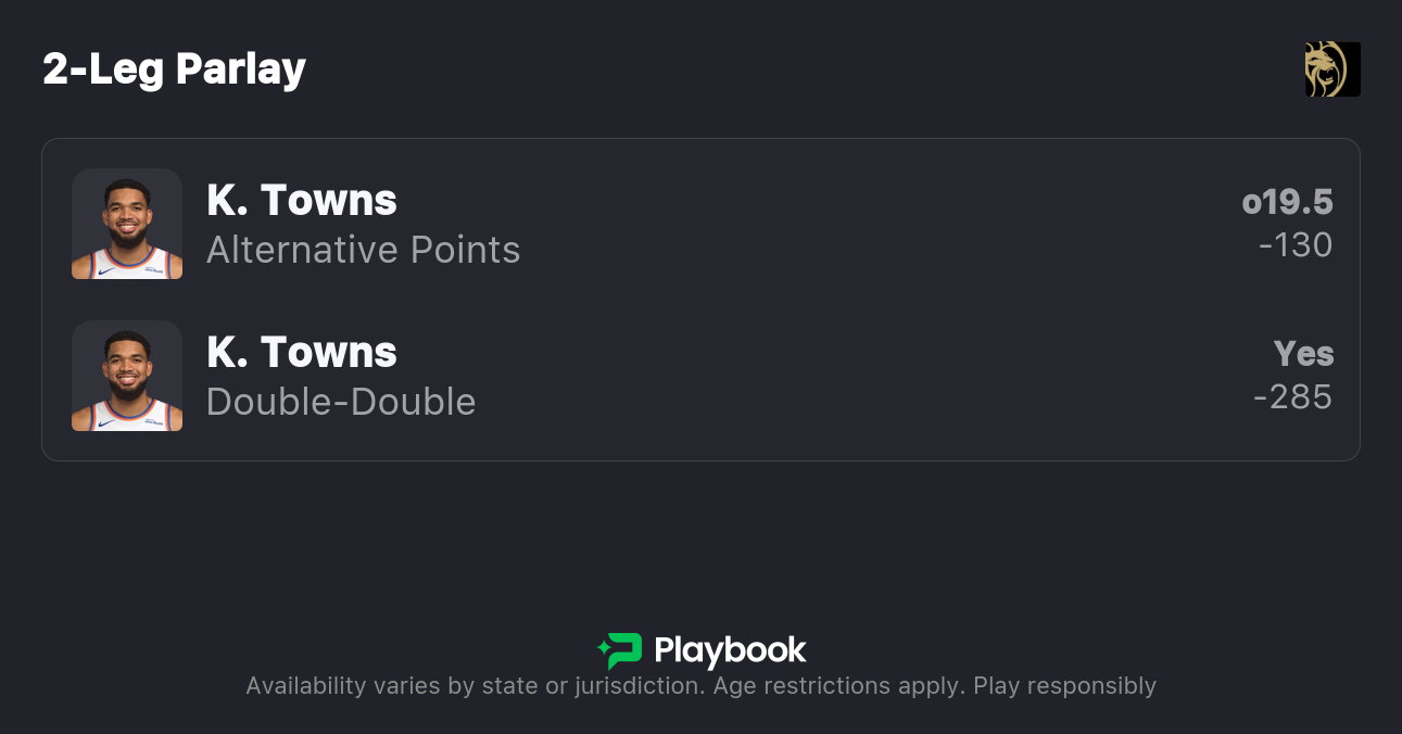- Karl-Anthony Towns Over 19.5 Points (-130)