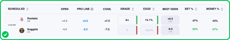- Rockets vs Nuggets pick: Rockets +6.5 (-105)