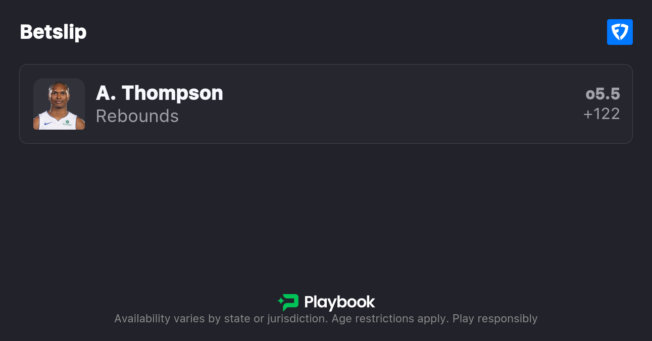 - Ausar Thompson Over 5.5 Rebounds (+122, FanDuel)