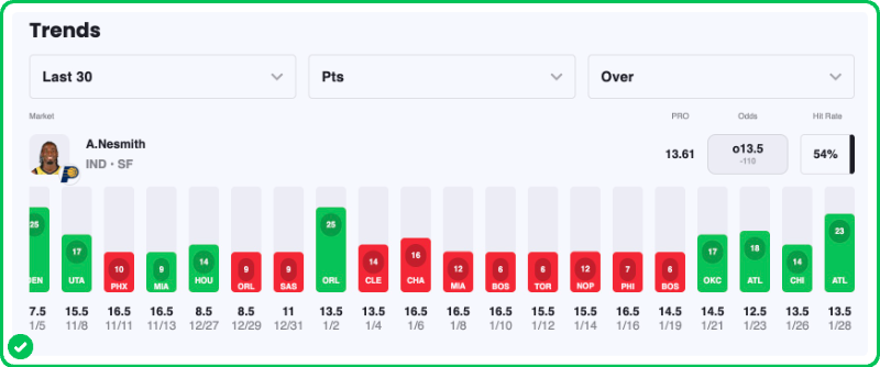 - Rockets vs Pacers pick: Aaron Nesmith Under 13.5 Points (-120)