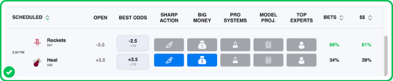 - Rockets vs Heat pick: Heat +3.5 (-110)
