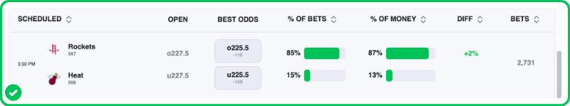 My Heat vs. Rockets best bet is on Miami to cover the spread at +3.5. Make sure to find the best odds by checking our live NBA odds page.