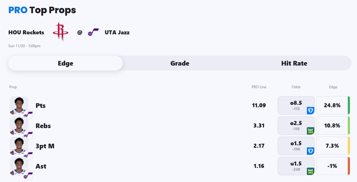 - Rockets vs Jazz pick: Brice Sensabaugh Over 8.5 Points (-119)
