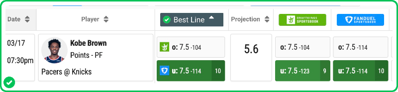 Our Knicks vs. Pacers best bet is on Kobe Brown to score under 7.5 points. Make sure to find the best odds by checking our live NBA odds page.