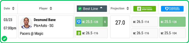 My Magic vs. Pacers best bet is on Desmond Bane to combine for over 25.5 points & assists. Make sure to find the best odds by checking our live NBA odds page.