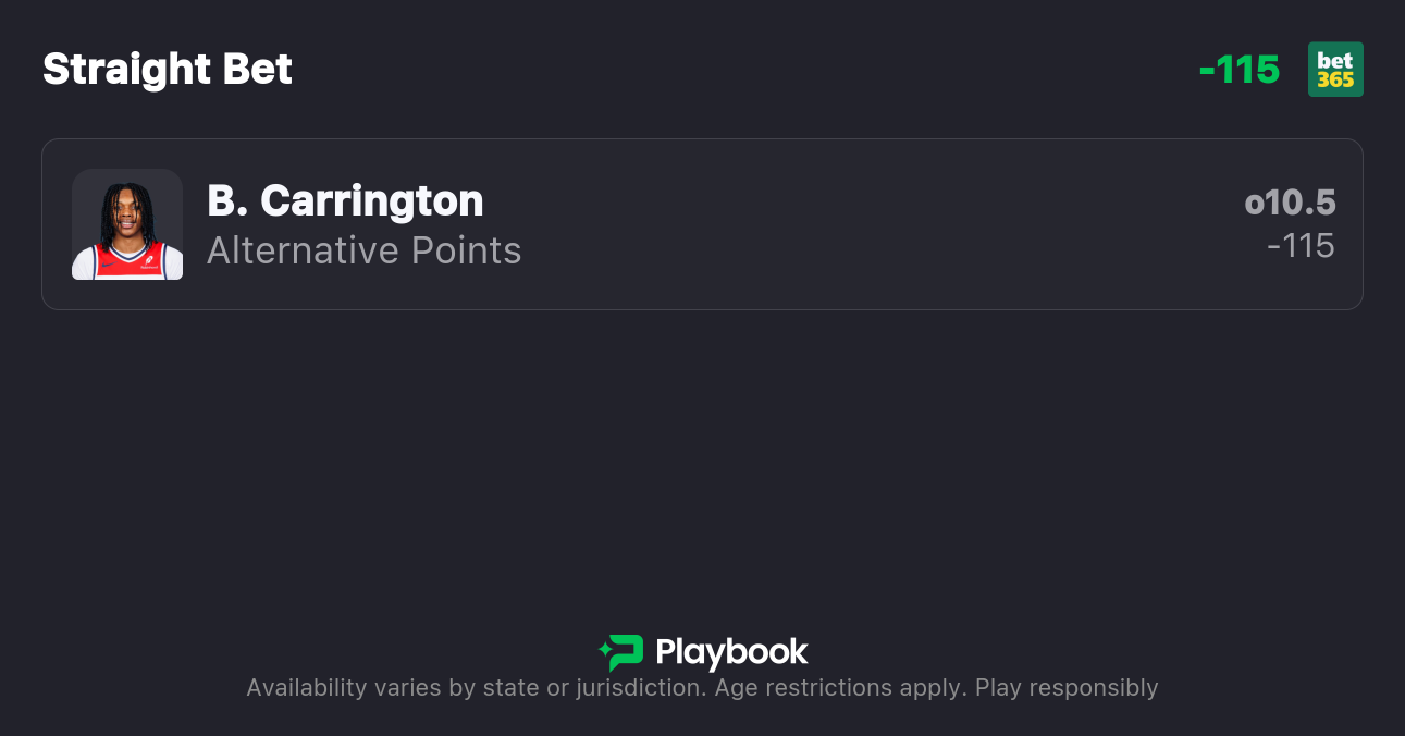 Pick: Bub Carrington Over 10.5 Points (-115, bet365)