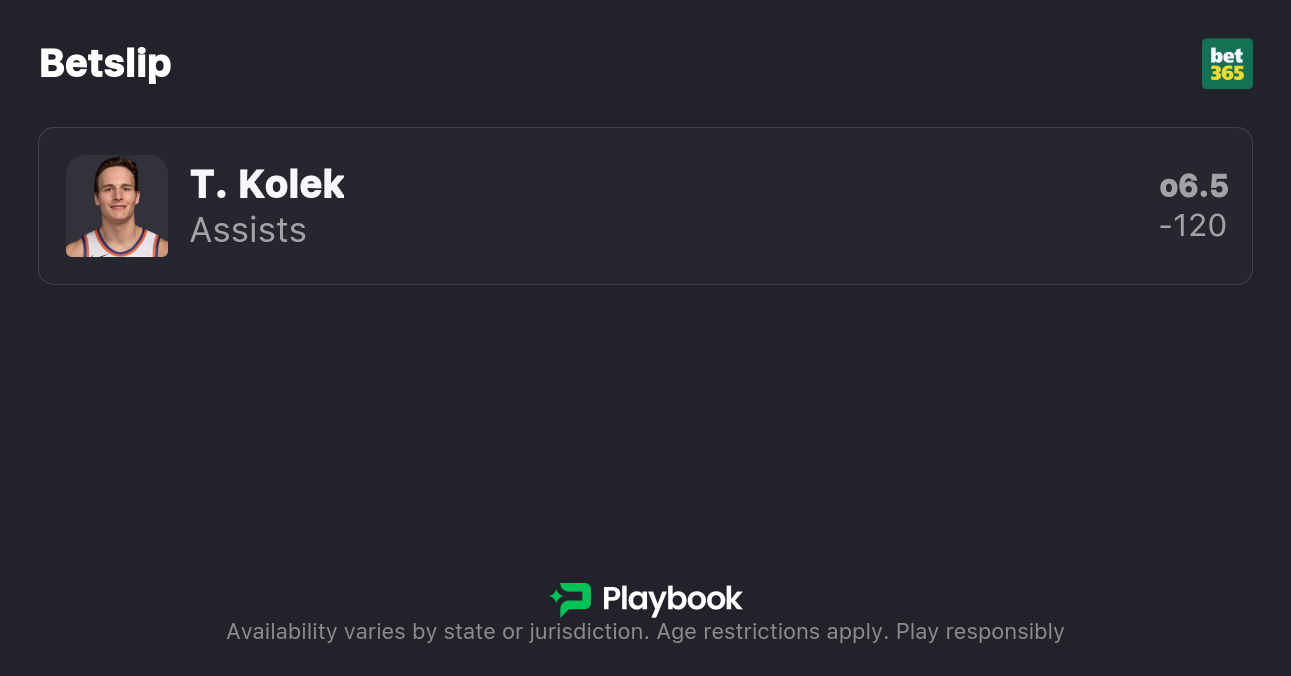 Pick: Tyler Kolek Over 6.5 Assists (-120)