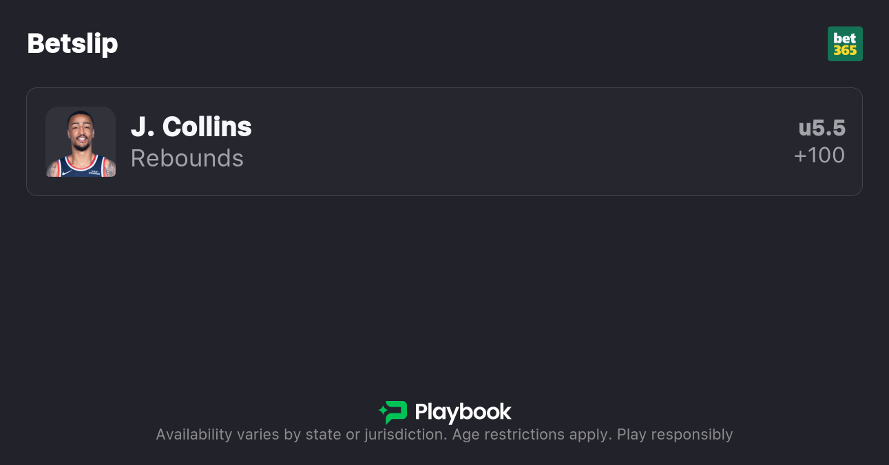 Pick: John Collins Under 5.5 Rebounds (+100)