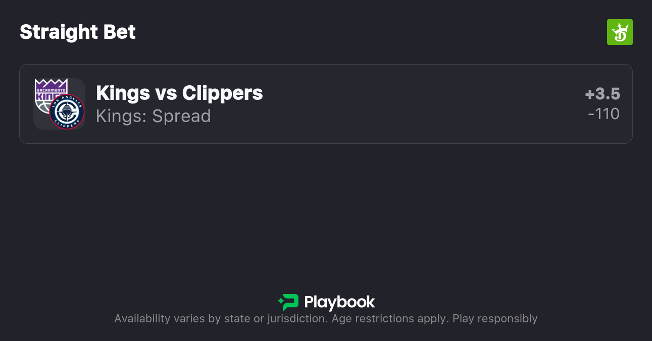 - Clippers vs Kings pick: Kings +3.5 (-110)