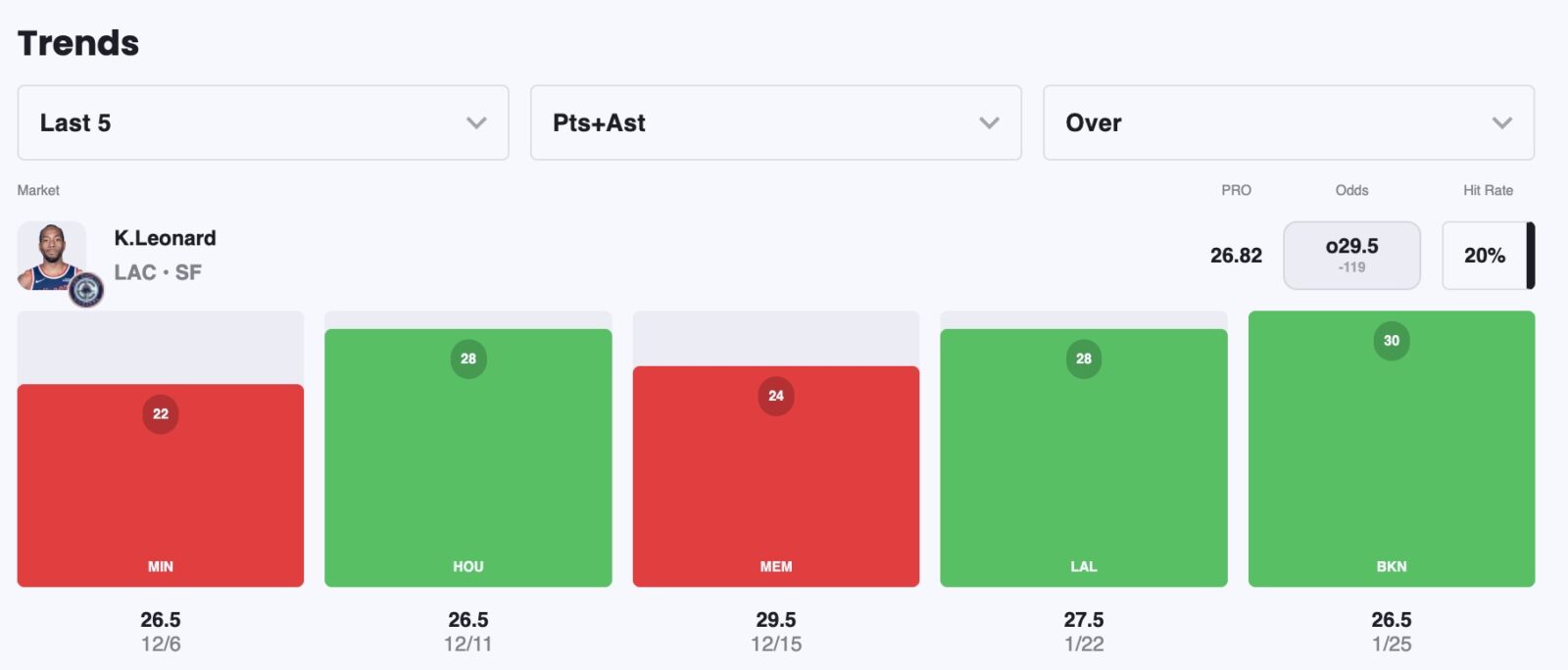 Should Leonard be in the lineup tonight, he’ll face a Jazz defense that ranks last in points allowed and 22nd in rebounds allowed.