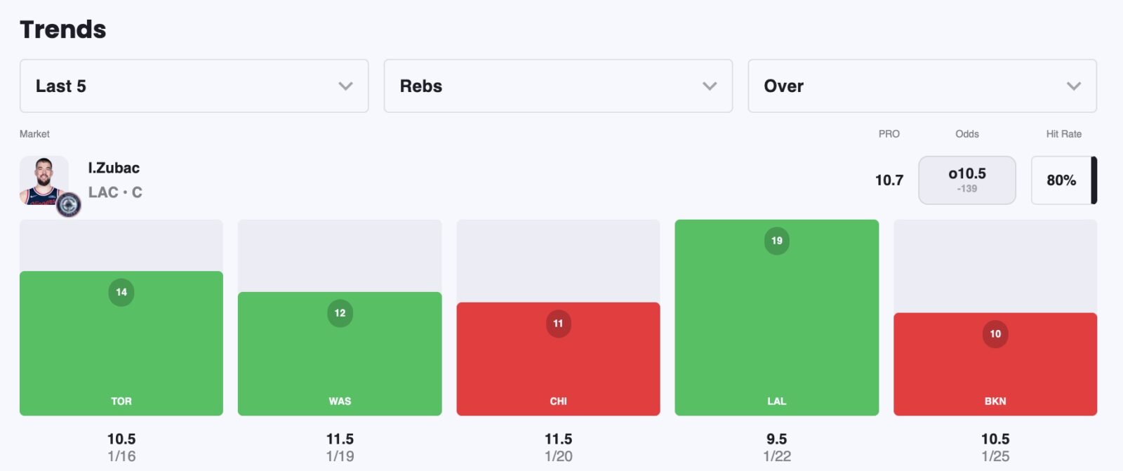 - Ivica Zubac Over 9.5 Rebounds