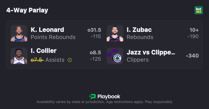 My Clippers vs Jazz best bet is on Kawhi Leonard to score over 31.5 points & rebounds, with the best price currently available at bet365, but make sure to find the best odds by checking our live NBA odds page.