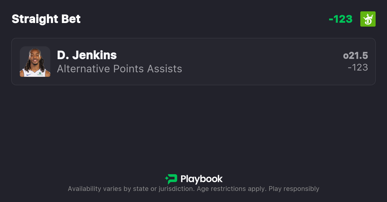 Pick: Daniss Jenkins Over 21.5 Points & Assists (-123)