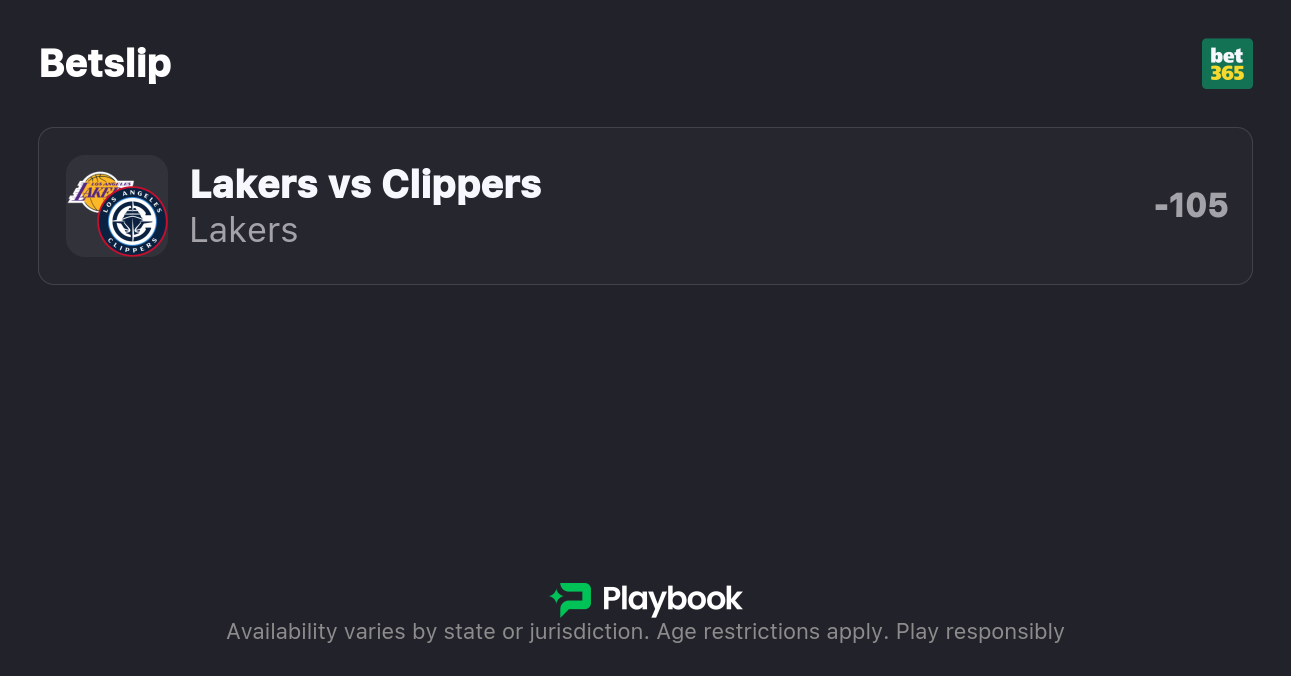 - Lakers vs Clippers pick: Lakers Moneyline (-105)