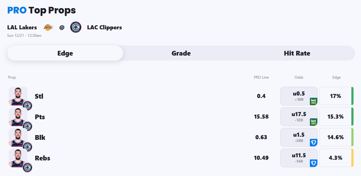 Action PRO projects Clippers center Ivica Zubac for 15.58 points tonight, a nice 15.3% edge against the market when compared to his 17.5 line.