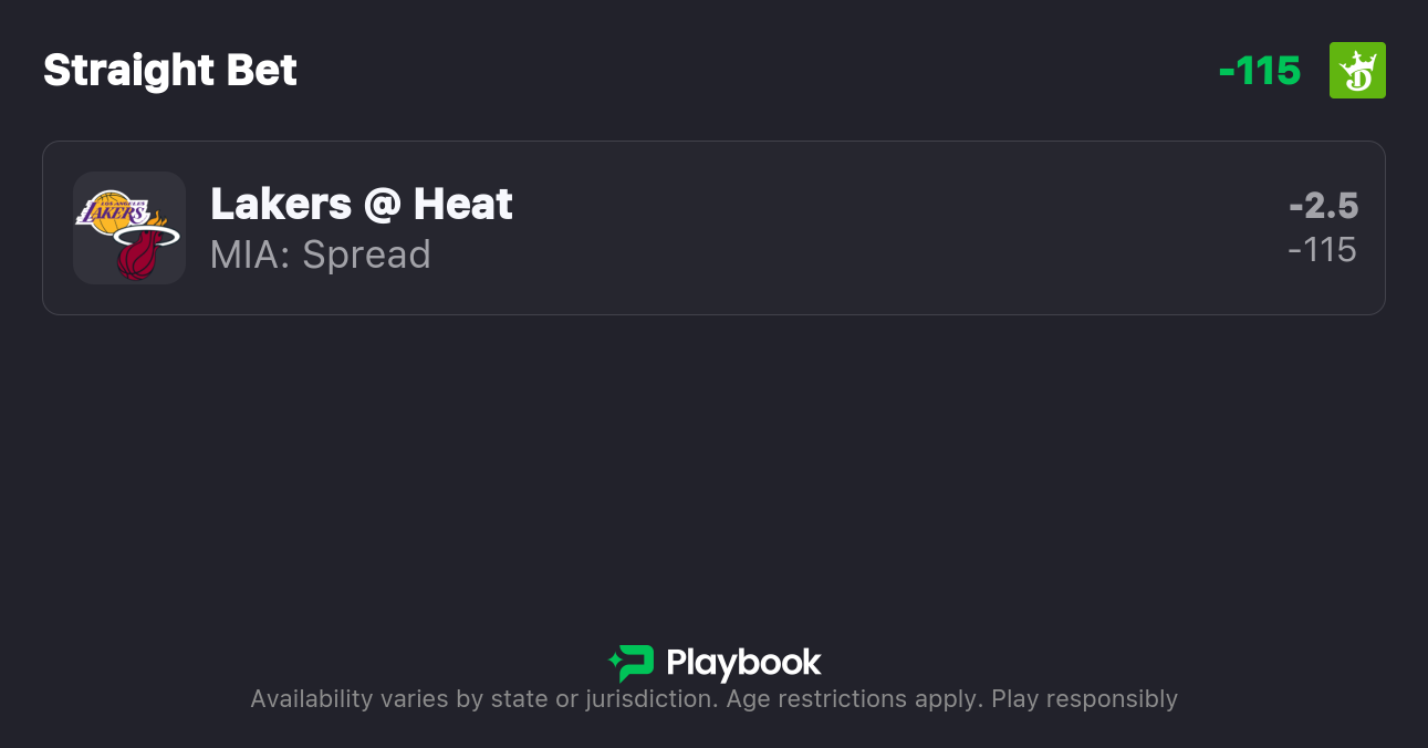 - Lakers vs Heat pick: Heat -2.5 (-115)