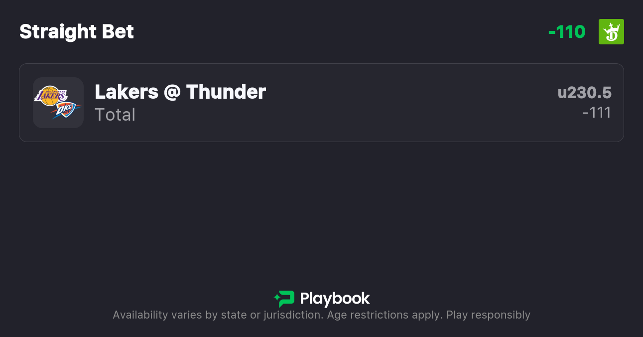 - Lakers vs Thunder pick: Under 232.5 (-110)