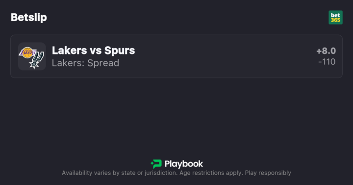 - Lakers vs Spurs pick: Lakers +8 (-110)