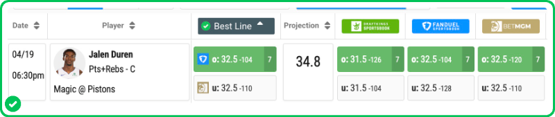 - Jalen Duren Over 31.5 Points & Rebounds (-115)