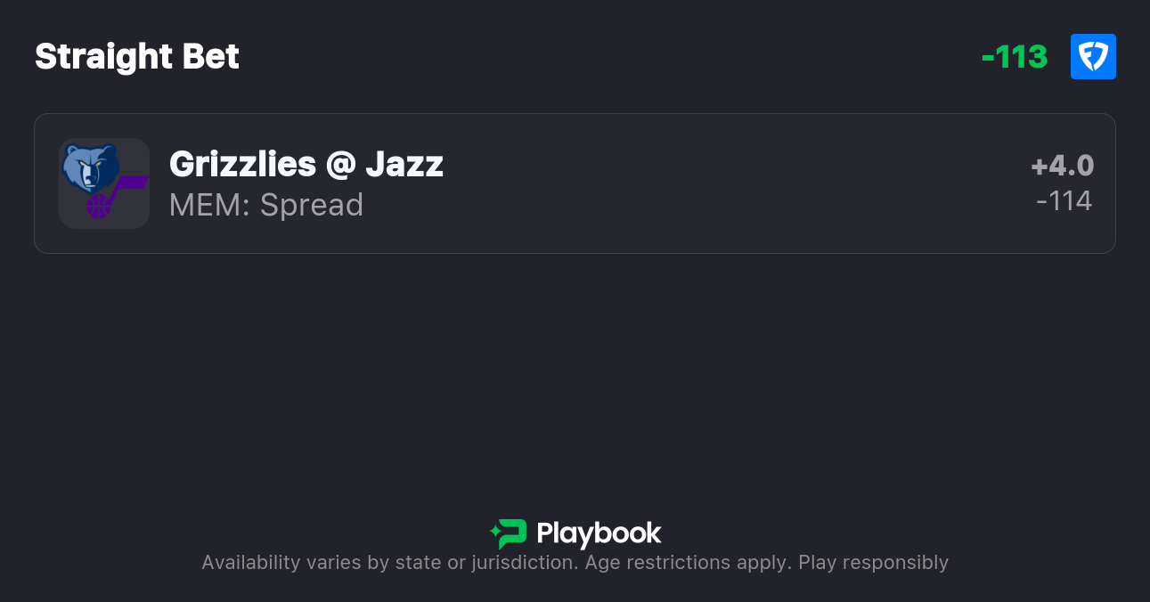 - Grizzlies vs Jazz pick: Grizzlies +4 (-114)