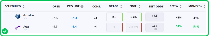 The betting markets have installed the Jazz as 4-point favorites, but our PRO projections offer a different route, giving the Grizzlies a B+ grade to cover the spread.