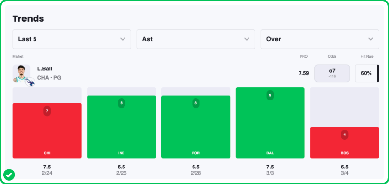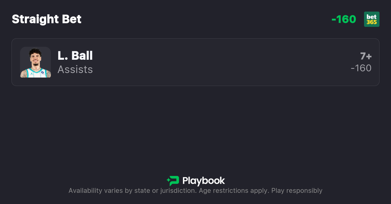 - LaMelo Ball Over 6.5 Assists (-135)