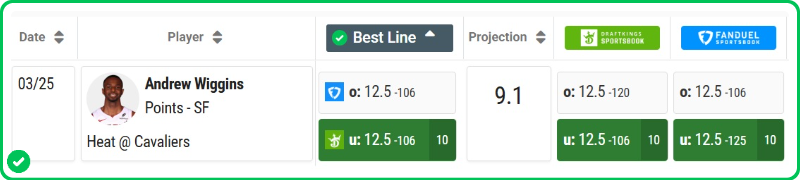 - Heat vs Cavaliers pick: Andrew Wiggins Under 12.5 Points (-125)