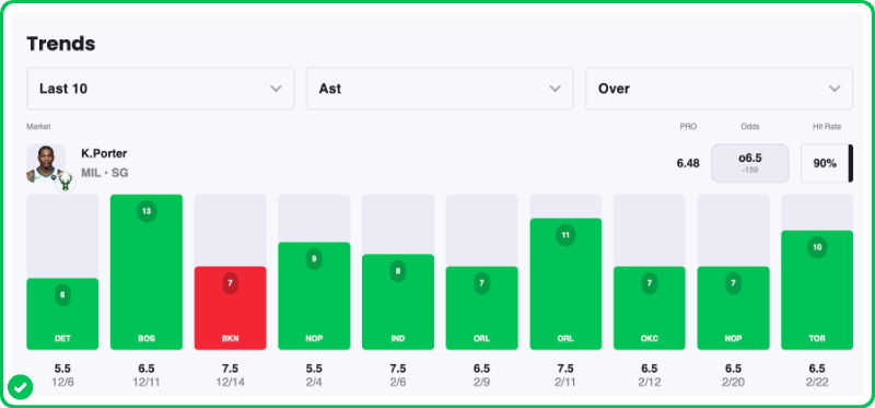 - Heat vs Bucks pick: Kevin Porter Jr. Over 6.5 Assists (-135)