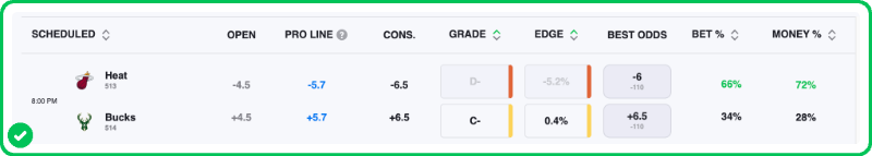 The Heat are 6.5-point favorites over the Bucks on the spread (Heat -6.5), with the over/under set at 229 total points. Miami is a -245 favorite to win outright on the moneyline, while Milwaukee is +200 to pull off the upset.