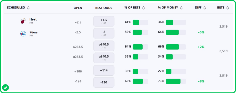 The 76ers are 2.5-point favorites over the Heat on the spread (76ers -2.5), with the over/under set at 240.5 total points. Philadelphia is a -135 favorite to win outright on the moneyline, while Miami is+114 to pull off the upset.