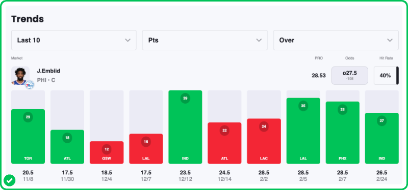 Pick: Joel Embiid Under 27.5 Points (-112, DraftKings)