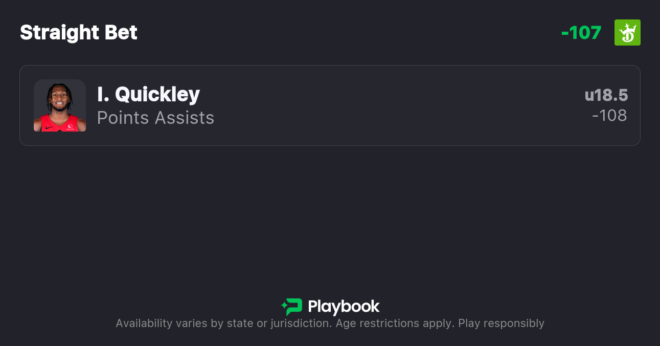 Pick: Immanuel Quickley Under 18.5 Points & Assists (-108, DraftKings)