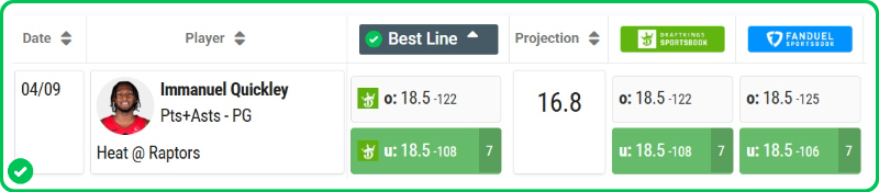 My Raptors vs Heat best bet is on Immanuel Quickley to combine for under 18.5 points & assists tonight. Make sure to find the best odds by checking our live NBA odds page.