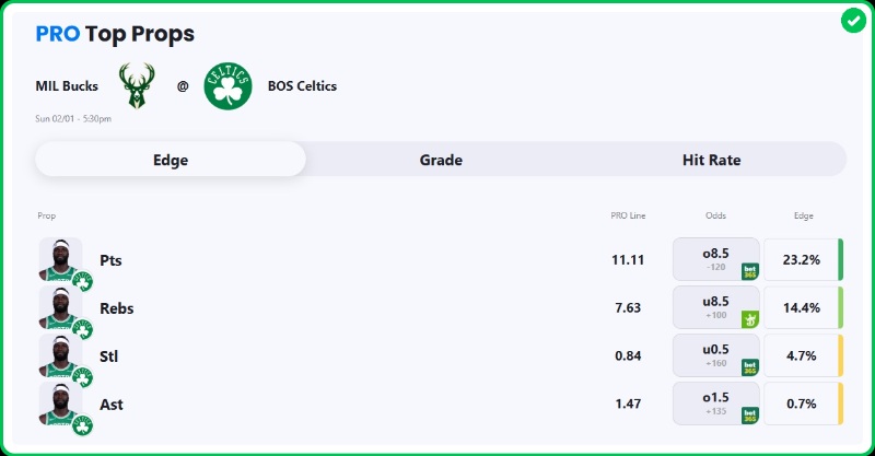 My Celtics vs Bucks best bet is Over 8.5 points for Neemias Queta this afternoon. Make sure to find the best odds by checking our live NBA odds page.