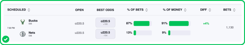 My Nets vs. Bucks best bet is on the game to go over 220.5 total points. Make sure to find the best odds by checking our live NBA odds page.