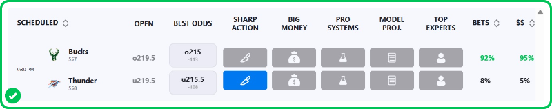 - Bucks vs Thunder pick: Under 215.5 (-108)