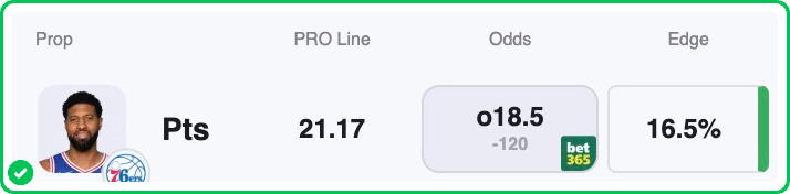 The market has set his total at 18.5, a number that feels curiously low in a game that the 76ers are going to try and win. Our Action PRO models project George to finish with 21.17 points, providing us with a very comfortable 2.6-point cushion.