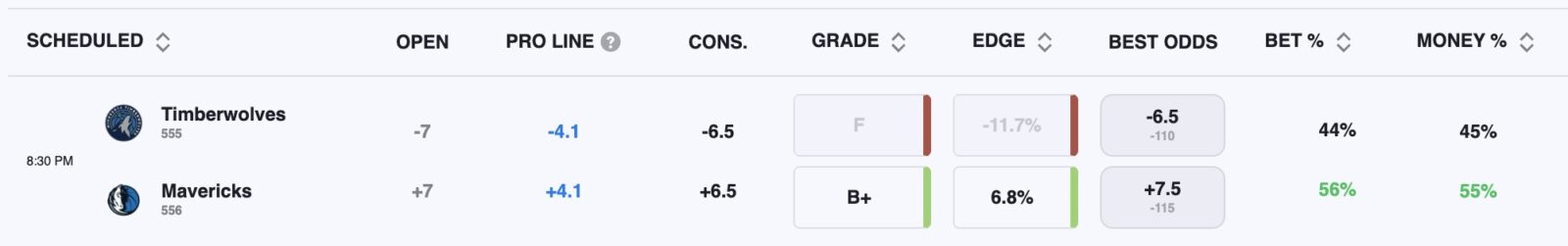 - Timberwolves vs Mavericks pick: Mavericks +6.5 (-105)