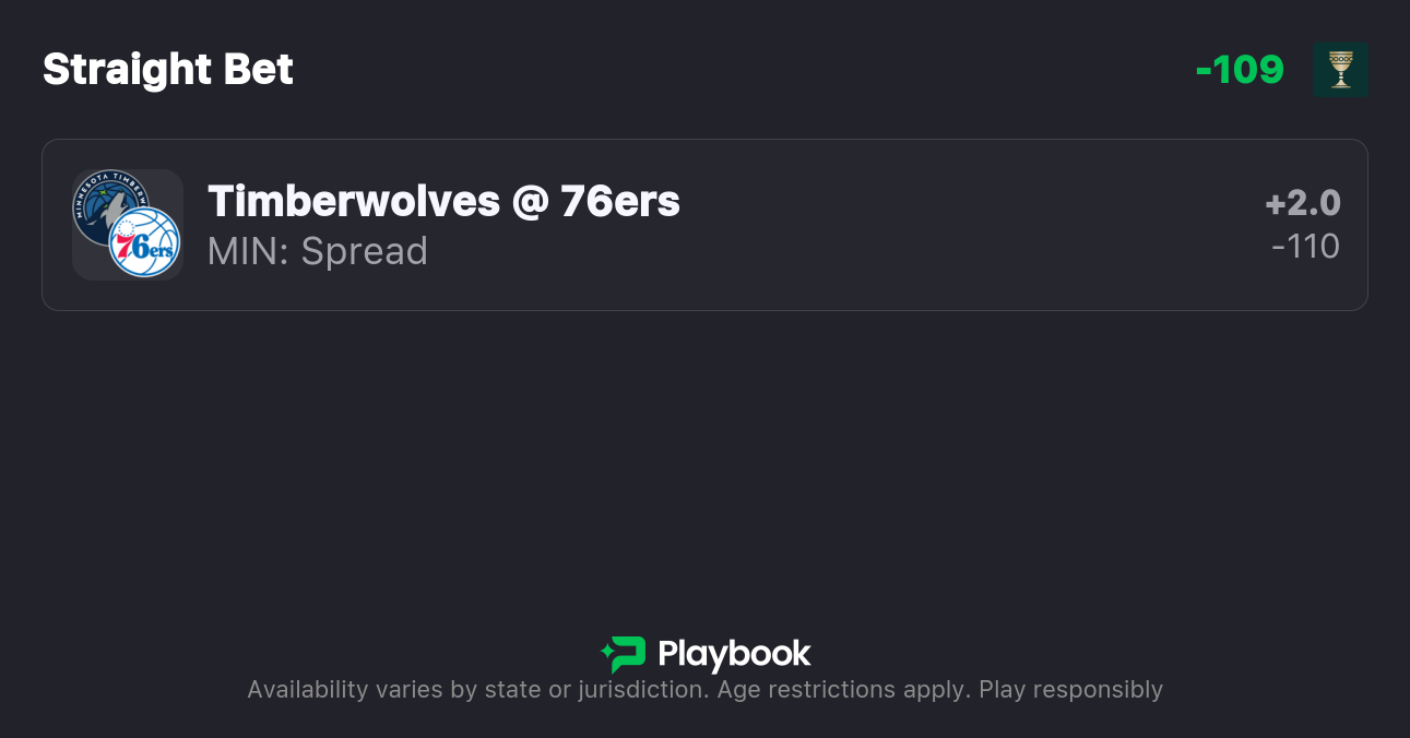 - Timberwolves vs 76ers pick: Timberwolves +2.5 (-110)