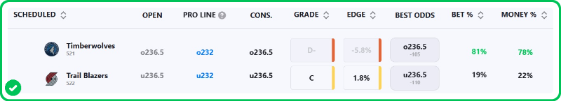 My Timberwolves vs. Trail Blazers betting prediction is under 236.5 total points at -112.