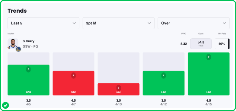 Pick: Steph Curry Over 4.5 Three-Pointers Made (+105)