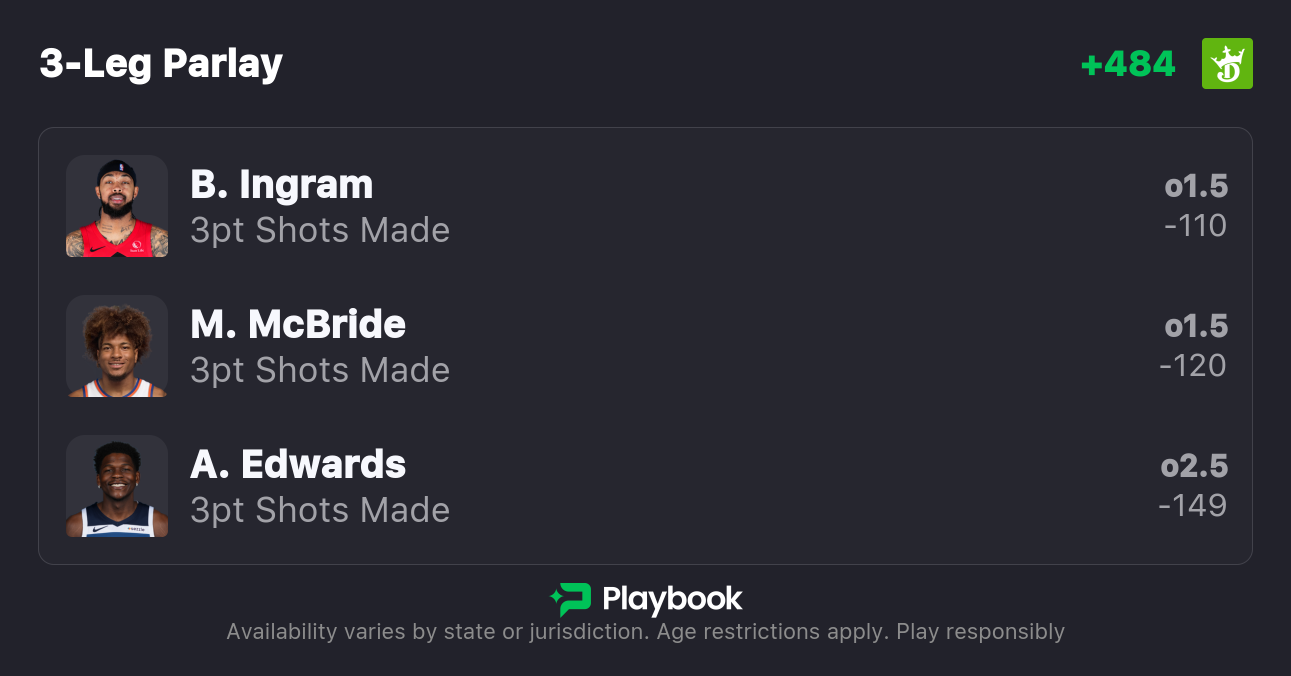 Our NBA 3-point props for Monday are targeting Brandon Ingram, Anthony Edwards and more. Continue below for our trio of prop bets for tonight's slate.