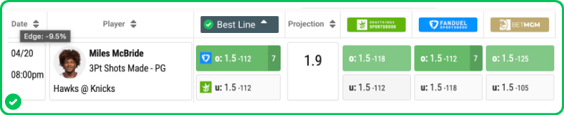 Our PRO Projection sits at 1.9, giving us a clear edge over the 1.5-mark. McBride is a shooter that the Knicks trust to stay on the floor for defensive purposes, which keeps his minutes floor high enough to see 5-6 attempts from deep.
