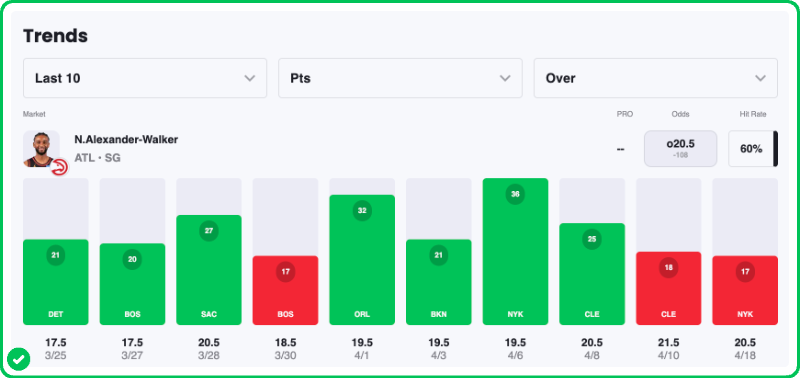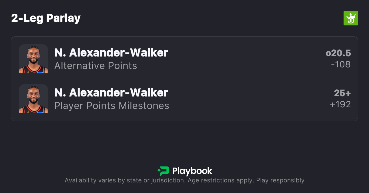 - Nickeil Alexander-Walker to Score 25+ Points (+192)