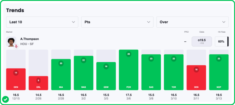 Pick: Amen Thompson Over 18.5 Points (-125)