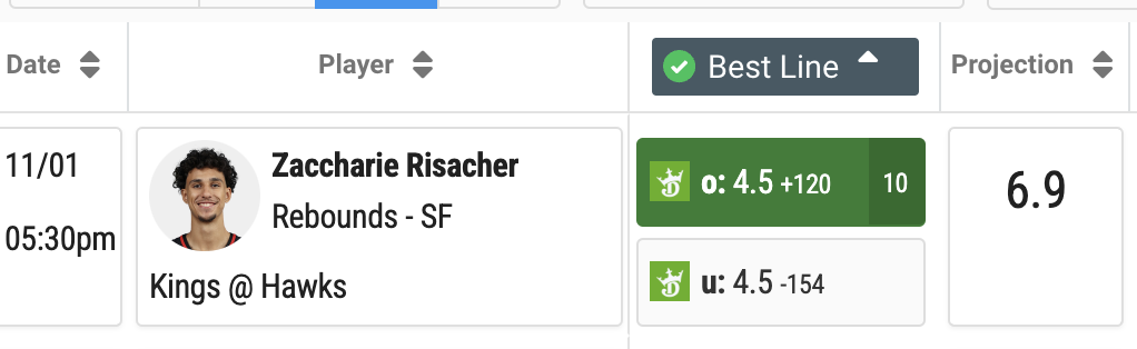 Risacher over is our best pro-tools prop of the night, projected at 6.9 boards: